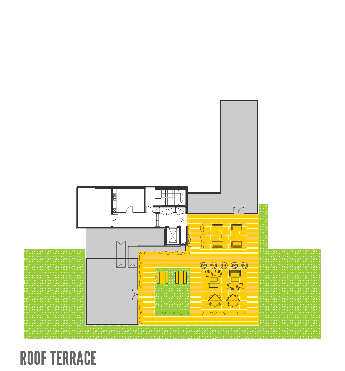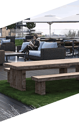A roof terrace deserves to be used –that’s why we are providing free wifi, outdoor furniture, and space for your weekly exercise class.