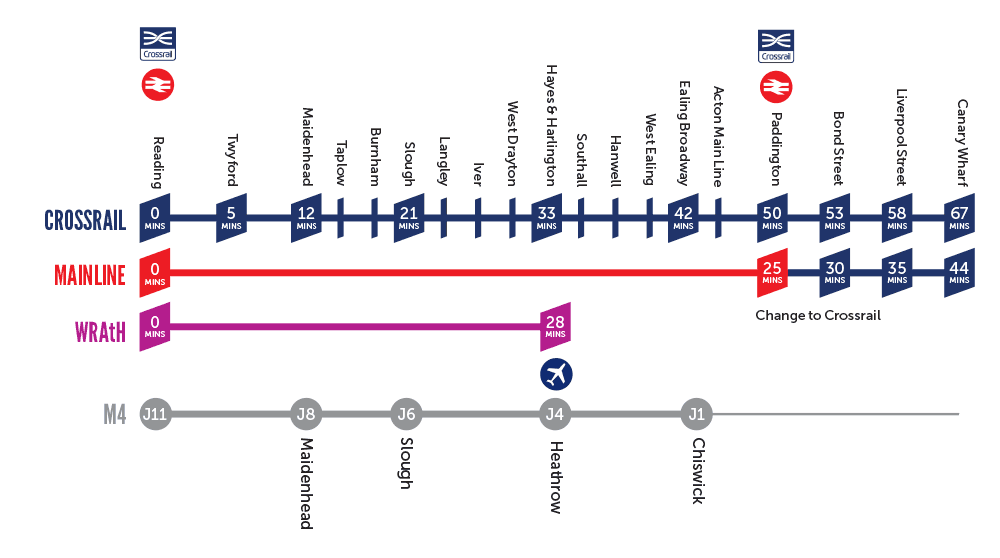 For the maximum benefit, you will be able to combine the First Great Western service to Paddington with the Crossrail service and achieve the following journey times: