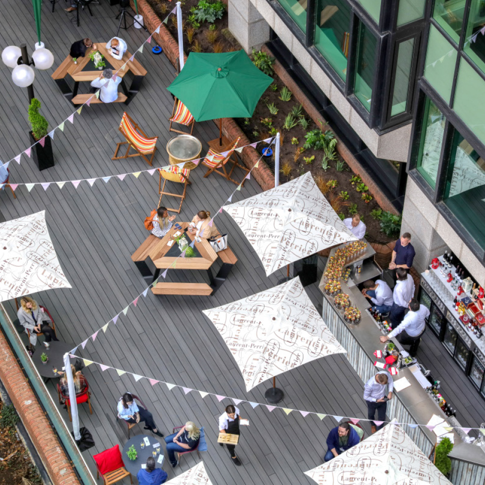 Experience the vibe of our riverside terrace