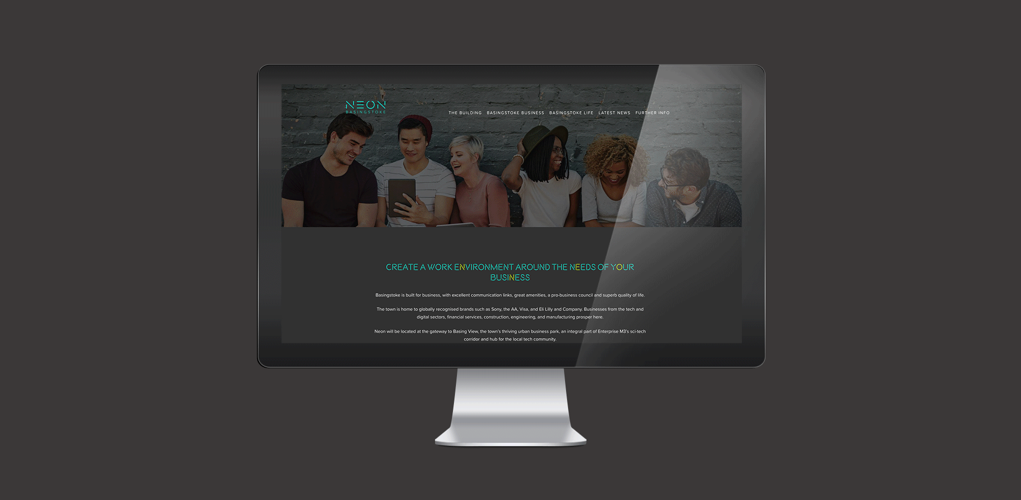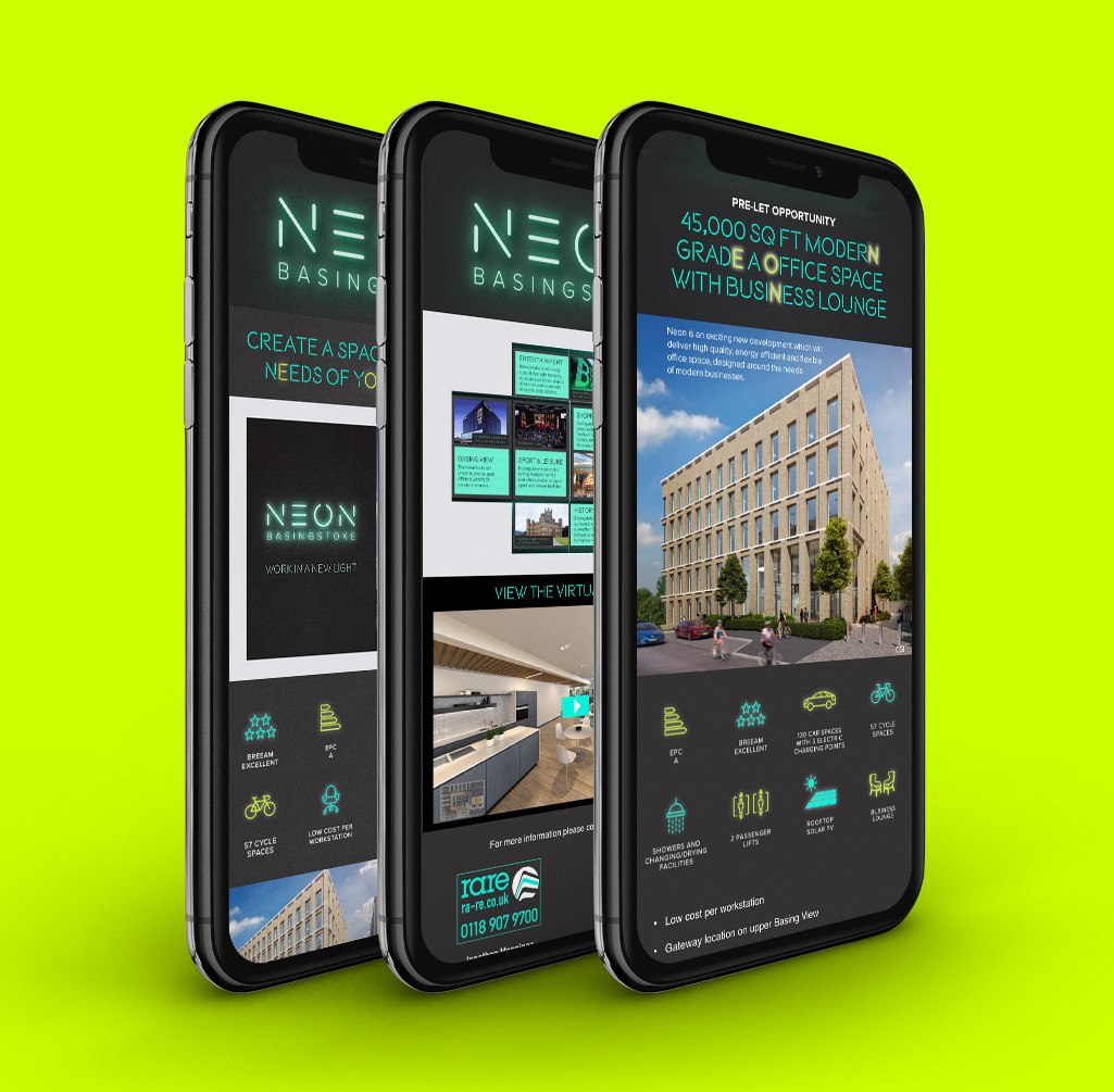 Neon – Named by Indent – is a 45,000 sq ft office building under construction in Basingstoke. Having created the brand identity Indent produced marketing materials to highlight the selling points of the building before its completion.